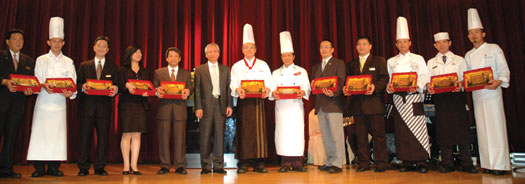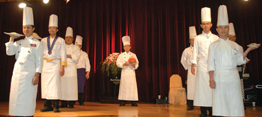 ▲平日嚴肅的大廚們在記者會上特別安排了一段獻菜走秀,博得滿堂喝采。