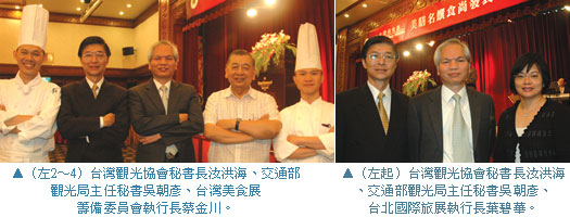 一年一度的美食饗宴即將登場!預計於8/9~12於世貿一館A區舉辦的2007台灣美食展,以「謎漾的川味」為主題,除了將邀請多位兩岸名廚現場示範多道川菜,進行一場精采的「辣壇論味」,本次展覽共有十大主題,區區精采,像是7國8組廚藝團隊同台較勁的新亞洲菜世界廚藝邀請賽、以及結合日月潭、南投集集埔里鹿谷等3大旅遊勝地的日月潭風情饗宴展等等諸多豐富內容。台灣觀光協會秘書長汝洪海表示,美食其實也是觀光發展上相當重要的一環,而此次結合旅遊景點與在地美食,兩者相輔相成,相信無論是對於國旅市場或是Inbound而言都相當有幫助。