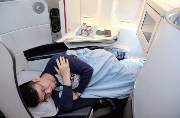 ▲商務艙座椅可調整成180度平躺的2米長大床,相當舒適。