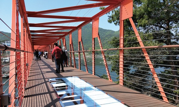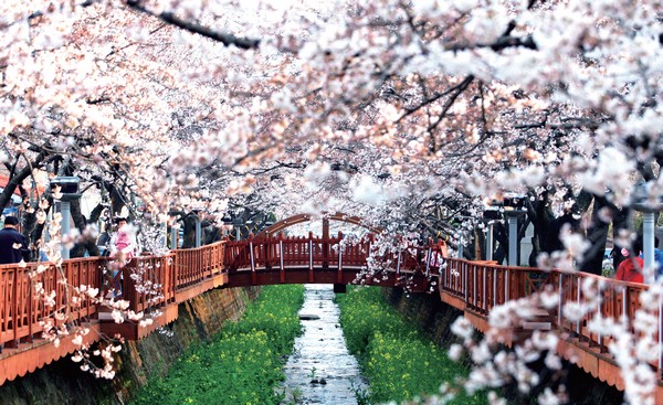 昌原市鎮海區的余佐川浪漫街,是著名的賞 櫻景點,約1.4公里長的河岸兩旁植滿櫻花 樹,初春盛開時美不勝收;與其連成一線的 「內水面環境生態公園」,種植了許多花草 樹木及濕地植物,風景如畫;不遠處的海洋 公園頂樓瞭望台視野開闊,俯瞰周邊景致令 人心曠神怡。馬山地區的「馬山魚市場」是 韓國最大規模的魚市場之一,販售各式新鮮魚 蝦、現切生魚片及乾貨,可以一路從馬山魚 市場,走到販售傳統物品的富林市場、巷弄 充滿創意彩繪裝飾的想像街以及聚集藝術家 的倉洞藝術村。此外,被稱為「韓國版桂河 大橋」的豬島天空步道、可見韓國傳統建築 與生活文化的「昌原之家」,以及「2018世 界射擊錦標賽」的比賽場地─昌原國際射擊 場,皆值得一遊。