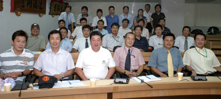 ▲(前排左起)公會壘球隊副隊長許哲偉、公會壘球隊副隊長藍一晴、公會壘球隊副召集人吳志浤、公會壘球隊社長沈祖壽、公會壘球隊隊長潘成地、公會壘球隊副隊長羅國華及球隊擴大編組成員。