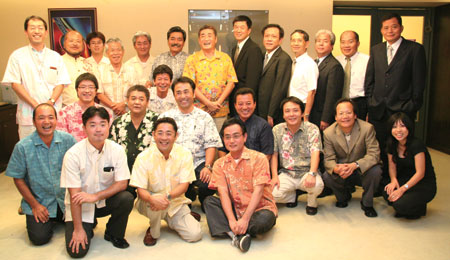 ▲10/2拜會交流晚宴現場實況,麗星郵輪台灣區總經理盧冠群(第3排右6)、台灣主力銷售業者~永業旅行社董事長吳勛豐(第3排右5)、良友旅行社董事長陳政男(第3排右4)、理想旅運社總經理李隆豐(第3排右3)、新進旅行社總經理方世宗(第3排右2)、大登旅行社總經理林博宗(第3排右1)、上順旅行社董事長李南山(第2排右2)以及財團法人沖繩觀光會議局台北事務所代表上地晶子(第2排右1)皆出席晚宴。