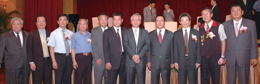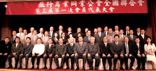 ▲旅行公會總會第3屆理事長與理、監事合影,(前排左5起)副理事長許禓哲、林尚志、監事主席張玉林、理事長姚大光與副理事長黃瑞榮。