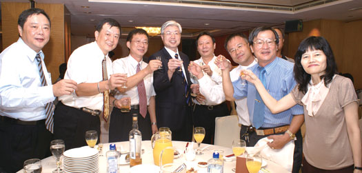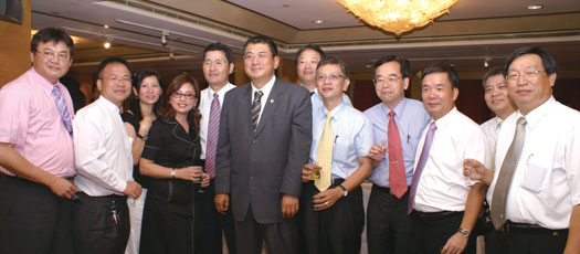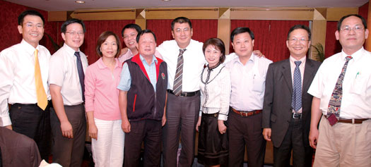 ▲與姚大光(左6)私交甚賭的苗栗縣縣長劉政鴻(左5)特率團隊出席晚宴。
