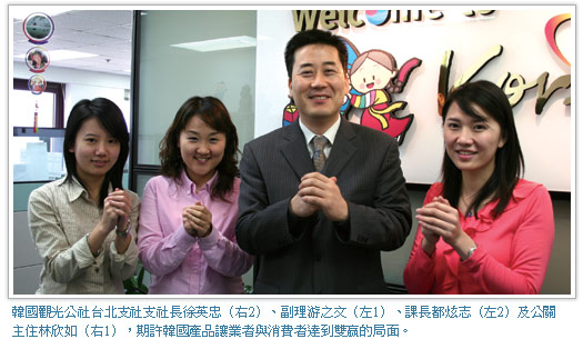 除此之外,新行程的開發也是2006年必行的工作之一,徐英忠表示,「將與有興趣的業者進行多方面的商討,規劃出符合市場需求的嶄新產品。不管推廣韓國的成績如何,實質的行動是不會間斷;也希望能與更多的同業相互激勵,給予台灣旅客全新的韓國體驗。」