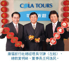 值得一提的是,今年康福將朝向「金色可樂」的目標邁進,結合一定規格的食宿商品,推出更頂級的行程。同時,今年還是康福全體「堅持100」的活動年:朝向創意100、速度100、服務100、利潤100,安排不同的員工教育訓練,以積極競爭、有效管理的方式,達成目標。