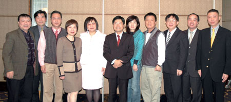 ▲(左起)駐台北越南經濟文化辦事處副主任范孟海、世界旅行社副總鄭皓元、盈達旅行社汪良基、雄獅總經理周健、帆華董事長陳黃美珠、越南航空台灣區總經理黎青勇、世點總經理劉秋香、欣洋通運吳榮達、大來股份有限公司副總紀乃元、董事陳聰明、湄江旅行社董事長符澤泉。