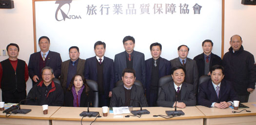 ▲(前排左起)品保協會常務理事王啟漢、大陸委員會召集人駱炫宏、理事長林進榮、山東省臨沂市旅遊行業協會副會長賈華、常務理事王玉華。