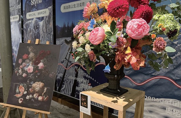 ▲活動布置設計以奧地利美景宮於歷史博物館舉辦的特展為靈感,將花藝融合繪畫展現奧地利藝文魅力。