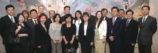 澳大利亞商工辦事處簽證處副處長方舒文(後排左3紅衣女子)、昆士蘭旅遊局台灣區經理簡明芬(前排左5)、前澳大利亞商工辦事處簽證處處長陳淳(前排左6)、新任澳大利亞商工辦事處簽證處處長何逸恩(後排右3)、澳洲旅遊局台灣區經理林芳如(前排右4)與前來道賀的經營澳洲線主力業者合影。