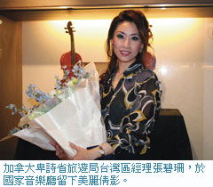 此外,加拿大卑詩省旅遊局台灣區經理張碧珊也在商談會中表示,「加拿大卑詩省旅遊局為了歡慶在台10週年,特別邀請了溫哥華市及海岸山脈區、溫哥華島、湯普森歐墾娜根、庫特尼洛磯山脈及參盟西洋參水療養生中心等5區加拿大當地業者或負責人來台,其主要目的要提供台灣業者一些新的訊息,彼此之間的交流探討引發新產品。」
