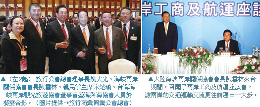 另外,針對大陸觀光客來台一事,為了改善目前來台人次不符兩岸民眾期待的現況,大陸方面也正研議擴大開放赴台旅遊地區,增加組團社數目,同時雙方同意將旅客組團人數限制從10人降為5人,在台停留期間從10天延長為15天,以上意見未來仍會由雙方相互推動實施。