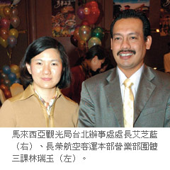 艾芝藍進一步說明,「為讓台灣旅客體驗馬來西亞風光及多元文化,馬來西亞觀光局積極規劃許多不同主題式行程,例如:獎勵旅遊、高爾夫球、養生旅遊、青年旅行、民宿之旅、新婚蜜月及潛水等,邀請旅客感受馬來西亞多元風情,更期許突破20萬觀光人次的目標(2005年為17萬2千人)。」
