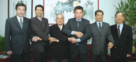 ▲ 華航與華信代表日前拜訪品質保障協會,除了拜早年之外,希望透過同業間的緊密聯繫與互動,能夠面對未來的挑戰。(左起)華航台北分公司客運營業部經理賴祥光、華航台灣地區行銷副總經理兼台北分公司副總經理董國樑、華航台灣地區處長兼台北分公司總經理余劍博、品保協會理事長林進榮、華信航空總經理陳明堂、品保協會副理事長黃文桂。