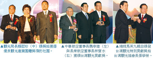 4.優良觀光產業及團體獎: 觀光導遊協會、台北縣旅館商業同業公會、開陽國際旅行社、金界旅行社、福華大飯店、台北君悅大飯店、晶華酒店、六福客棧、尊爵大飯店、京都商務旅館