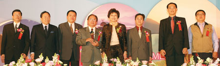 ▲ 2009觀光節慶祝大會隆重盛大,(左起)台灣觀光遊樂區協會理事長朱鍾宏、交通部觀光局長賴瑟珍、總統馬英九、交通部長毛治國、旅行商業同業公會理事長姚大光、觀光旅館商業同業公會理事長莊秀石共同揭開2009旅行台灣年啟動儀式。2009觀光節慶祝大會上總統馬英九強調「台灣開放才有機會」,並重申運用300億觀光產業發展基金的政策,「雖然台灣入境旅客人數僅佔台灣總人口的16%,稱不上是觀光大國,但2008年的入境旅客人數,與2007年相比增加約13萬人,成長幅度為3.5%,出境旅客則減少約50萬人,下滑5.5%,不過入境人口數能在不景氣的時局逆勢成長,仍屬欣慰。根據觀光局統計,今年農曆春節期間,全台共有1,133萬人從事觀光旅遊活動,跟2008年相比成長12%,共創造225億的觀光產值。」
