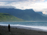 我最喜歡在早晨時前往那兒散步,在廣闊的海岸線,踩著潔凈有致的石頭。一路向北,遠眺著高聳的太魯閣群山,以2、3千公尺的龐然,矗立海岸旁,跟你遙遙對峙。它們如大洋之浩瀚,卻不以緊迫的壁立,讓你驚悚。