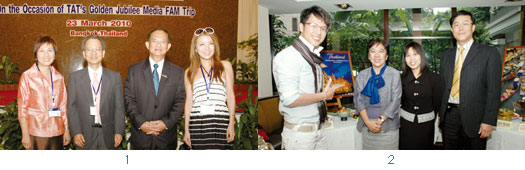 泰國推廣文化與旅遊不遺餘力,藉著泰國觀光局成立50週年值得紀念的時刻,邀請世界各地記者前往泰國體驗精采旅程,參觀5個重點地質景觀區與10個主要觀光勝地。除此,泰國貿易經濟辦事處更與台北市政府文化局、國立國父紀念館等相關單位,於3╱20起聯合舉辦「2010泰國週」一連串活動。