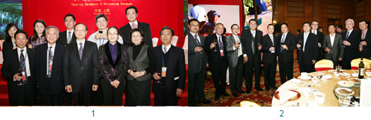 1.台灣觀光協會組成的台灣代表團192人參加上海中國旅交會。(前排左2起)台灣觀光協會長周慶雄、中國國家旅遊局長邵琪偉、上海市副市長趙雯、台灣觀光協會大陸市場執行長左郁文與台灣觀光協會團員。2.中國國家旅遊局副局長祝善忠(左6)與台灣業者合影。(左起)海旅會台北辦事處綜合協調組副組長張華明、台灣觀光協會長周慶雄、品保協會理事長曾盛海、旅行公會總會理事長姚大光、海旅會台北辦事處主任范貴山;(左7起)中國國家旅遊局旅遊促進與國際合作司司長劉克智、旅行公會總會監事王扶搖、貴州省旅遊局長傅迎春、旅行公會總會監事主席張玉林、省旅行公會聯合會理事長蕭博仁。3.上海市旅遊局局長道書明(左4)與台灣業者合影。4.中國國家旅遊局旅遊促進與國際合作司司長劉克智(中)、貴州省旅遊局長傅迎春(左)與中華兩岸旅行協會理事長許晉睿。