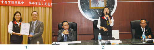 1.品保協會理事長曾盛海(右)感謝花蓮縣政府的招待,頒發感謝狀予花蓮縣政府觀光旅遊處處長陳又珍。