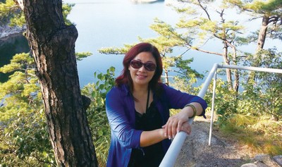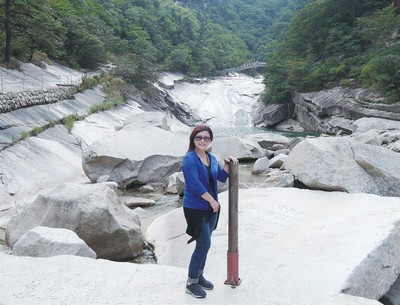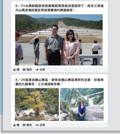▲中國海峽旅行社董事長許淑玲登上金剛山欣賞八潭景