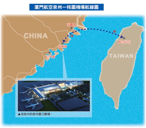 廈門航空洞燭先機,一眼看穿泉州秀麗風光的迷人魅力,遊客絡繹不絕是勢之所趨,秉持服務、貼心與創新的服務熱誠,特別自2013/11/26開航「桃園—泉州」航線,每週二、日兩個航班,並邀集台灣旅行業者實地考察,透過專業的眼光、對遊客旅遊需求知之甚詳、經年累聚的豐富操作經驗,籌畫設計合適的旅遊產品,滿足旅遊饕客的需求,一起發現泉州美麗新世界。