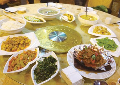 ▲西藏餐食多安排中式合菜,蔬菜種類多。