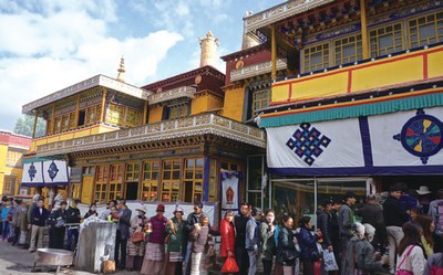 ▲扎基寺是西藏唯一的財神廟,據說非常靈驗。供奉的財神特別嗜酒,所以排隊民眾都會買一瓶白酒、一捆艾草松葉,帶著哈達和零錢進入參拜。