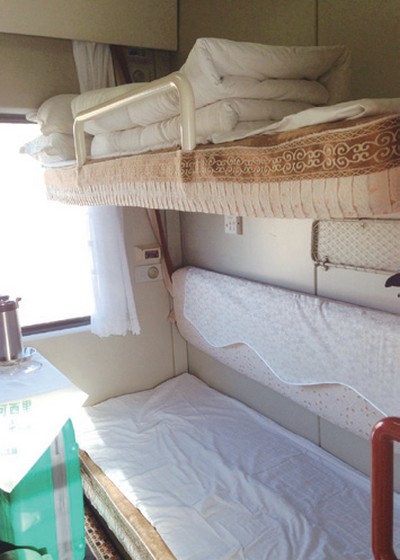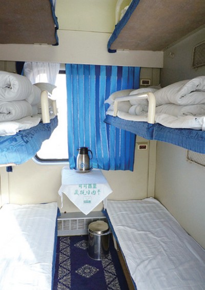 ▲青藏鐵路火車座位分為硬座、硬臥和軟臥三種,硬座和台灣一般火車座位類似,硬臥六人一室沒門,最上層會有壓迫感,軟臥四人一室有門,空間較為寬敞,觀景的窗戶也大些。
