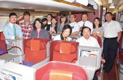 ▲在香港航空的支持下,考察團團員體驗香港航空最舒適的商務艙服務。