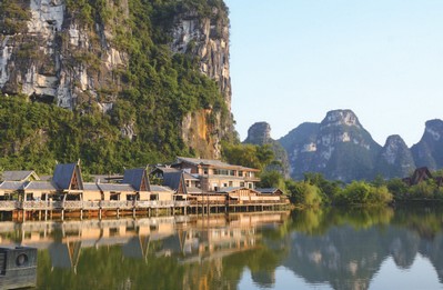 有小桂林之稱的明仕田園,山清水秀,宛如陶淵明筆下的桃花源,是中國最美的鄉村度假旅遊區。景區內可搭乘竹筏漂流,在竹筏上欣賞兩岸喀斯特地形地貌的奇山異石以及田園風光,也可以騎著自行車慢慢遊覽景區內青葱翠綠的田野、看看古風淳樸的壯族村落以及農家生活。