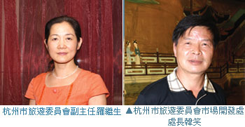 在旅遊休閒發展上,杭州市一直走在最前頭,杭州市旅遊委員會市場開發處處長韓笑表示,「杭州未來計畫成為東方休閒之都,並極力朝向台灣市場發展,以統計數據來看,杭州旅遊預計突破200萬人次,浙江旅遊以杭州為首要,因此從杭州輻射到各個周邊城市,帶動周邊城市的旅遊發展是杭州是很重要的任務。」