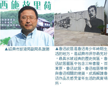 在中國大陸的中學課本中,有36篇關於魯迅的著作,因此,紹興市旅遊局順勢推出「跟著課本遊紹興」,對於內地遊客而言,是十分熟悉的旅遊模式。紹興市的歷史地位可謂舉足輕重,紹興市旅遊局副局長謝勝就表示,紹興自古以河運繁多聞名,交織的河道密佈紹興市,因此往來期間多為船行,紹興市的烏蓬船就成了紹興市的主要交通工具,當然時至今日,許多河道因為都市發展而被掩埋填補,但是烏蓬船在魯迅故居的景區內,依舊是處處可見,謝勝強調由於荷花會與西施故里的推動,結合紹興市的景點,預估今年將有4萬台灣旅客前往紹興旅遊。