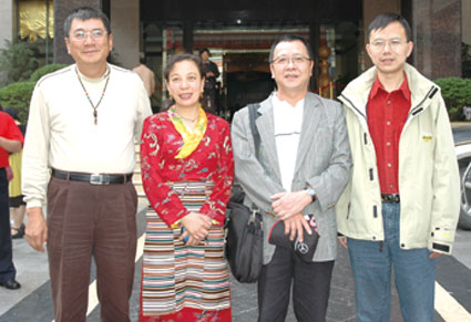 ▲今年年中甘孜州來台拜會,是此次公會總會前往當地考察的契機,(左起)北市公會理事長姚大光、甘孜藏族自治州人民政府副秘書長曲梅、公會總會理事長曾盛海與甘孜藏族自治州副州長胡斌。
