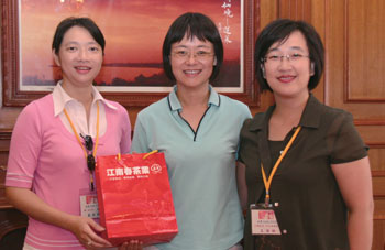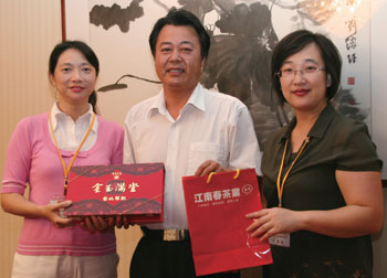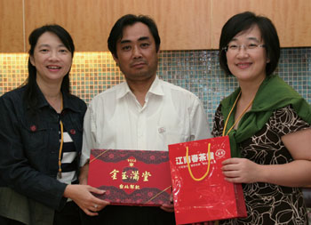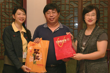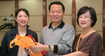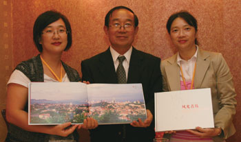 樺一旅行社董事長嚴從音、煙台市旅遊局副局長李偉功、 大韓航空公司訂位票務督導王海倫