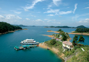 從杭州往西行,即可抵達另一個在台灣知名度極高的經典景區─千島湖。千島湖是興建新安江水電站後,所形成的大型人工湖,湖中約有1,078個大小島嶼,素有「千島碧水畫中遊」的美譽,以往曾與杭州、黃山串聯成一條山水黃金旅遊路線。