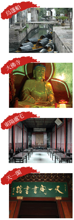 其中,天一閣號稱是中國現存最早的私人圖書館,閣內藏有30餘萬卷各類古籍版本、歷代石碑百餘塊。據傳,天一閣創建人范欽,畢生喜愛蒐購書籍,在他臨終前,特別把家產分成天一閣與藏書,還有一萬兩銀子,讓兩個兒子挑選。結果大兒子挑選了天一閣與藏書,並遵照范欽「代不分書,書不出閣」的遺訓,天一閣才得以保存至今。