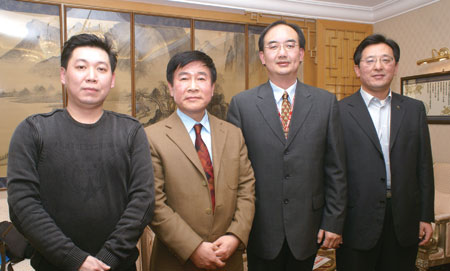 ▲(左起)山東康輝國際旅行社總經理金豪謙、山東省旅遊局副局長王元生、甲聯會公共關係組陳仁彬、山東省旅遊局旅遊促進與對外聯絡處副處長王榮國。