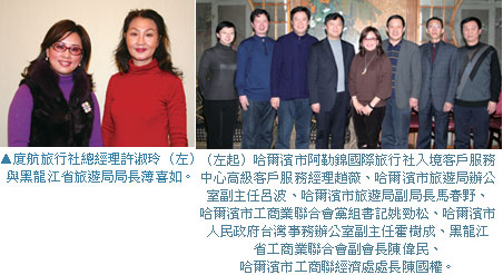 近日來,中國電視劇「闖關東」造成轟動引起觀眾討論,這部敘述山東子民到東北闖蕩的打拚故事,深刻傳達出生命的韌度與大時代下生活的艱困。其實,經營旅遊事業何嘗不是如此,操作中國東北市場逾4年的廈航旅行社總經理許淑玲,造訪東北超過30次,著迷東北三省豐富的旅遊元素,串起台灣與東北旅遊的橋樑,不斷推陳出新的旅遊產品也更貼近東北旅遊的門道,2008年元月開春,許淑玲旋即2次造訪東北,每次視察都收穫滿滿,期許為金鼠年創造更好的旅遊佳績。