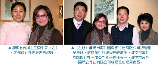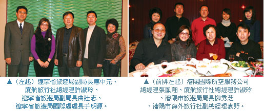從推廣初期的「東北金三角」路線再到全台合作的「東北大聯盟」,廈航旅行社年年皆規劃出最符合四季的行程,冬天的東北冰雪動感;夏天的東北避暑養生,經過產官合作下,各項建設與配套更能符合台灣遊客的需求。也因此,2008年遼寧省旅遊局再推出特色凸顯的精品旅遊路線,以遼寧省為中心設計出「一環三線」的深度旅遊,相信將為遼寧境內、境外旅遊再創造更好的佳績。
