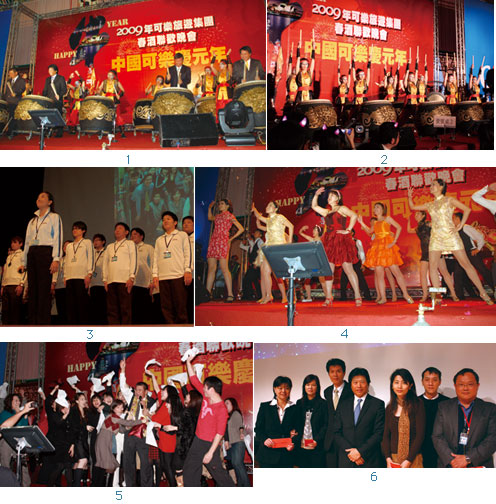 在一年一度的春酒宴會上,以國家古蹟陽明山中山樓為場地席開85桌,除了全省員工、領隊外今年更首次盛大邀請來自全球的分包商夥伴同樂。晚會以台中分公司同仁精心準備的「齊天戰鼓,西進中國」開場,宣示了中國可樂全面啟動的強烈企圖心,而由集團董事長黃明峰率領包括副董事長王柯逸民、康福總經理吳守謙、北極星總經理姚大光等一級主管的即興加入,更是讓現場high到最高點!