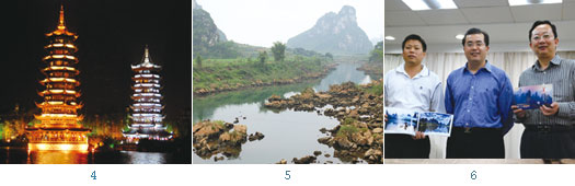 5. 廣西喀斯特地形奇觀讓人驚艷。6. (左起)南寧市旅遊局副局長俞軍榮、廣西壯族自治區旅遊局局長陳建軍、市場開發處副處長程大興。