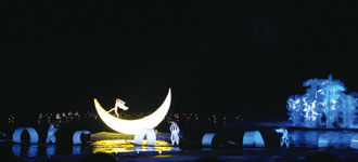 ▲印象劉三姐山水實景的歌舞演出實況。