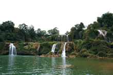 號稱世界第二大、全亞洲第一大的跨國瀑布,橫跨中越兩國,寬200多公尺、高70多公尺、縱深60公尺,三級跌落,壯觀而奇麗。而跨國大瀑布在廣西部份名為德天瀑布,在越南那一邊則稱為板約瀑布,旅客可從不同角度、高度,不同的地貌部位(峰頂、河水面、河灘草地、坡岸)觀賞到不同景致。觀賞的最佳季節是每年6~10月份,且搭船欣賞瀑布是當地的一種特色,越靠近瀑布聲勢越是驚人,尤其在崖底時,水霧撲面持續不斷,從這裡向上仰望,更有狂濤覆頂的懾人氣魄。(圖片提供/陳姮宜)