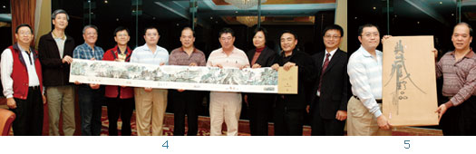 4.開平市旅遊局代表致贈「百樓圖」予甲聯會,雙方代表並於晚宴席間合影留念。