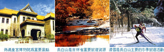 除了冬季特有的自然景觀令人著迷外,吉林還有多處景點因有著特有的文化背景讓它顯得更耐人尋味。為國家4A級旅遊景區的「偽滿皇宮博物院」就是一處相當具有代表性的景點,該博物院可歸類為建在偽滿皇宮舊址上的宮廷遺址型博物館,它是日本侵略東北時,溥儀充當偽滿洲皇帝時的「偽皇宮」,是一棟混合了中國古典、日式、歐式風格的建築,位於長春市中心區的東北面、光復北路5號,是旅遊業者必安排的景點。