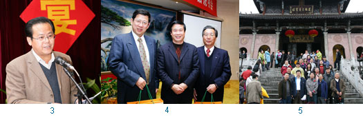1.(左起)台灣民宿聯盟理事呂人鳳、合肥市旅遊局市場開發處長唐建江、(左3起)前觀光局副局長郭蘇燦洋、中國國家旅遊局港澳台司馬慧、安徽省旅遊局副局長張雪平、旅行業經理人協會理事長白中仁、世邦旅行社董事長陳屬庄、東洋集團總裁郭淵源、中華兩岸旅行協會秘書田書遠、安徽省旅遊局市場開發處副處長武道勇。2.東洋集團總裁郭淵源(右)代表台灣觀光協會致贈禮品給安徽省旅遊局副局長張雪平。3.九華山風景區管理委員會副主任吳少華。4.(左起)旅行業經理人協會理事長白中仁、黃山市旅遊委員會主任劉英旺、東洋集團總裁郭淵源。5.台港澳旅行業者共20多人在九華山護國肉身寶殿前合影。