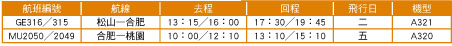 12月起松山合肥每週1班