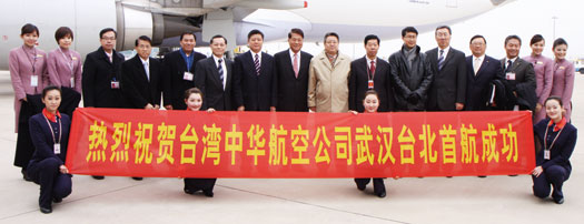 湖北省政協副主席陳春林表示,這2年兩岸在各方面的合作都展現了傲人成就,而航空公司的推動作用功不可沒。他讚許華航在該航線投入A333客機,提供旅客高品質的飛航服務。陳春林指出,台商在湖北投資一直位居中西部前列,包括鴻海、統一、宏達電、旺旺、光寶等企業皆前往湖北投資,常住台灣同胞近2萬名;自武漢到台灣的直航開通以來,該航線一直保持85%以上的載客率,湖北省赴台旅遊人數也已破4.08萬人,加上赴台交流和因個人因素赴台的人數,總數已達7萬人。同時,台灣到湖北旅遊人數逐年增長,2010年湖北省接待19.05萬台灣旅客,比2009年增長41.76%。