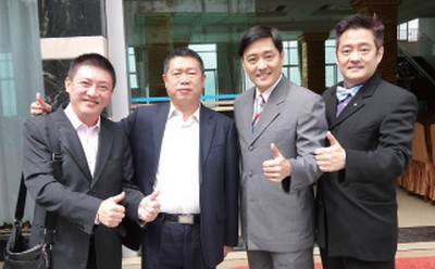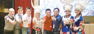 ▲(左起)雄峰旅行社董事長施懿、武隆縣旅遊局局長王德勝、雄峰旅行社董事李志希、雄峰旅行社董事李志奇。